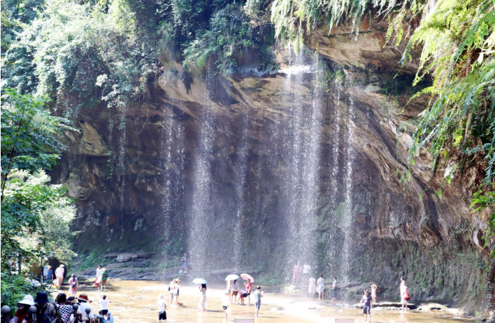 團(tuán)隊(duì)成員一行從觀沱下渡下船后,經(jīng)過1公里山間林蔭小道,開啟長略7公里的“中國最長石板河”踩水體驗(yàn):大家欣然下水后發(fā)現(xiàn),石板河一石沉底,托起淺淺清流,或急速、或緩流、徐徐下行、人水合一、動態(tài)接觸,讓人全新體驗(yàn)感十足;兩岸奇峰夾峙、林木森森,成就天下石板河之絕唱。大家先后經(jīng)過一碗水、一顆松、碧水長灘、響灘子瀑布、出谷食坊、水簾飛虹、水舞山間、戲水戰(zhàn)場等景點(diǎn),在溯溪戲水的樂園、避暑游樂的天堂中,讓人縱情山水,盡享水趣。然后,乘坐體驗(yàn)飛天魔毯穿越叢山峻嶺之間,遙望七彩玻璃水滑道的蜿蜒飛馳,感受大自然鬼斧神工和天下穹隆的瑰麗之美。